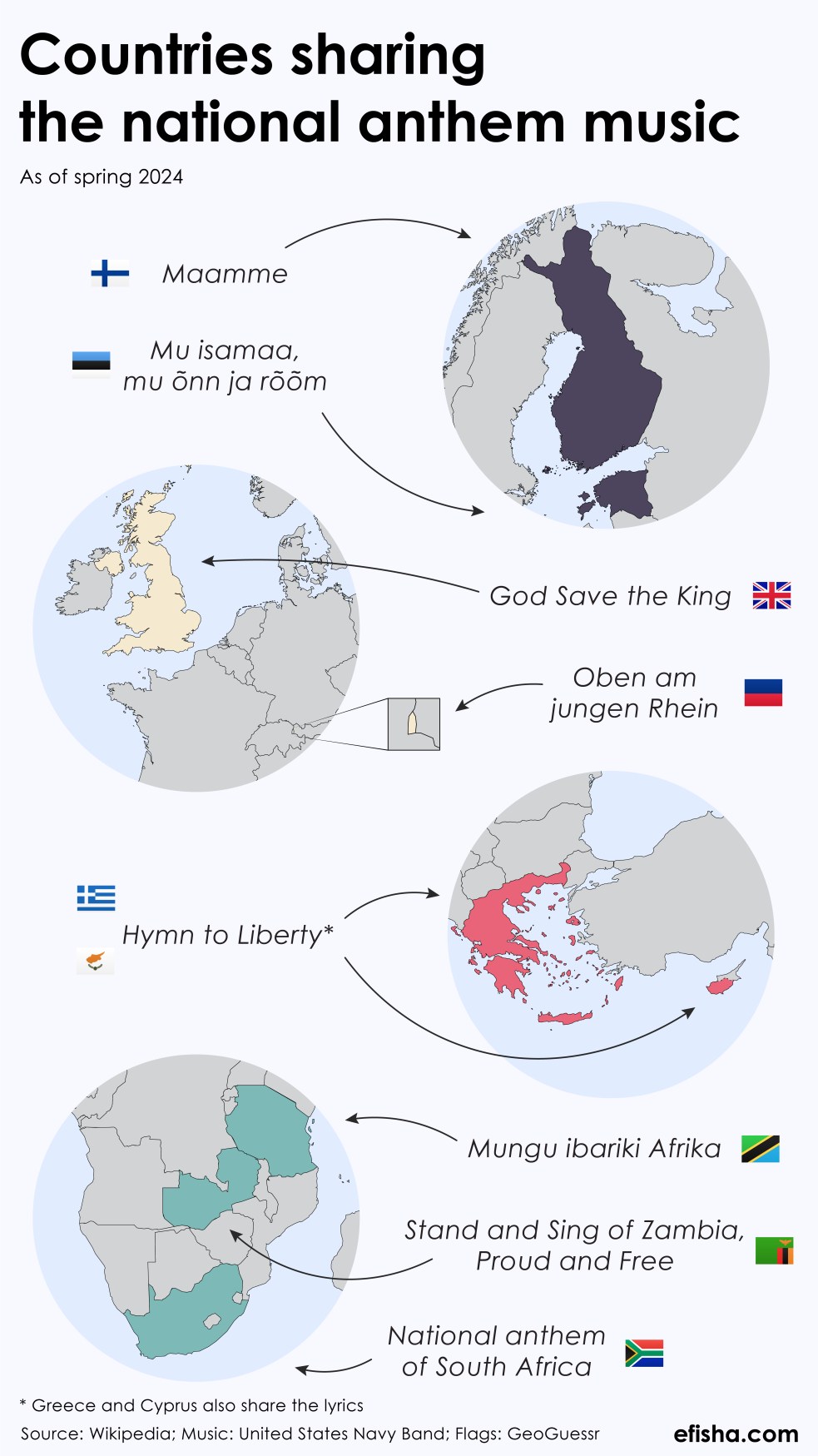 If you know any other national anthems that share the music or you want to share or ask something, send me a message using the contact page.